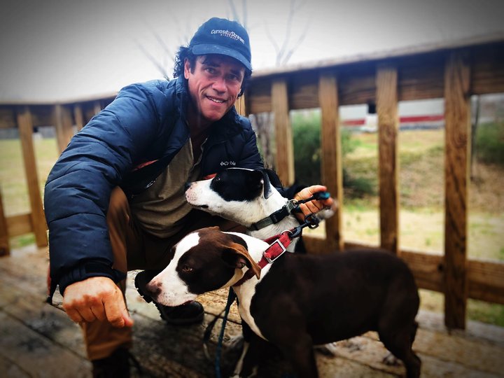 Douglas Thron with two dogs he rescued from the aftermath of the tornado in Mayfield, Ky. | Photos provided by Thron