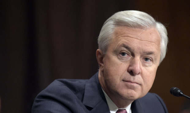 FILE – In this Sept. 20, 2016, file photo, Wells Fargo CEO John Stumpf testifies on Capitol Hill in Washington, before the Senate Banking Committee. Federal regulators have slapped former Wells Fargo Chief Executive Stumpf with a $17.5 million fine for his role in the bank’s sales practices scandal. (AP Photo/Susan Walsh, File)