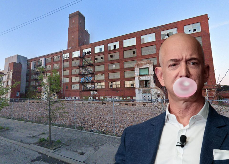 Jeff Bezos and the Old Wrigley gum factory at 3535 S. Ashland Avenue (Credit: Getty Images and Google Maps)