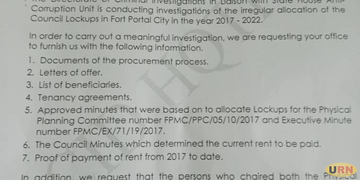 Moses Otimong, the Fort Portal City Town Clerk told Uganda Radio Network in a phone interview that, although he was not in office when the procurement of the premises was made, he has already informed all the implicated persons to avail the necessary information to his office and prepare to co-operate with the investigating agencies.