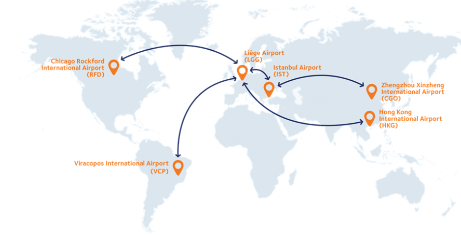 In September, DSV introduced its Globetrotter service connecting four continents with a Boeing 747 freighter. The route network includes Liege, Chicago Rockford International Airport, Hong Kong and Viracopos airport in Brazil.