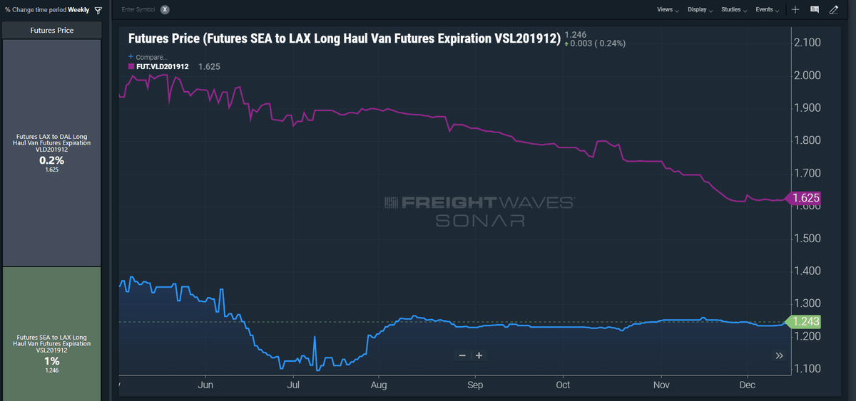 Freight Futures lanes to watch today: SEA to LAX (VSL) and LAX to DAL (VLD)