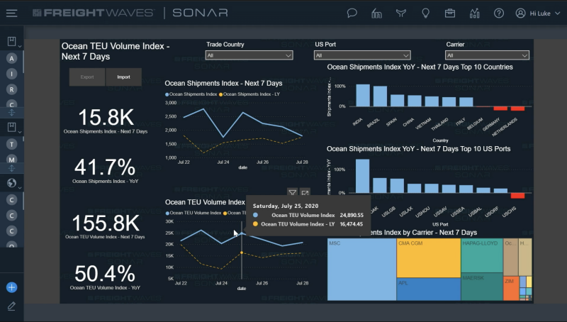 FreightWaves SONAR’s new Ocean Shipment Index Dashboard