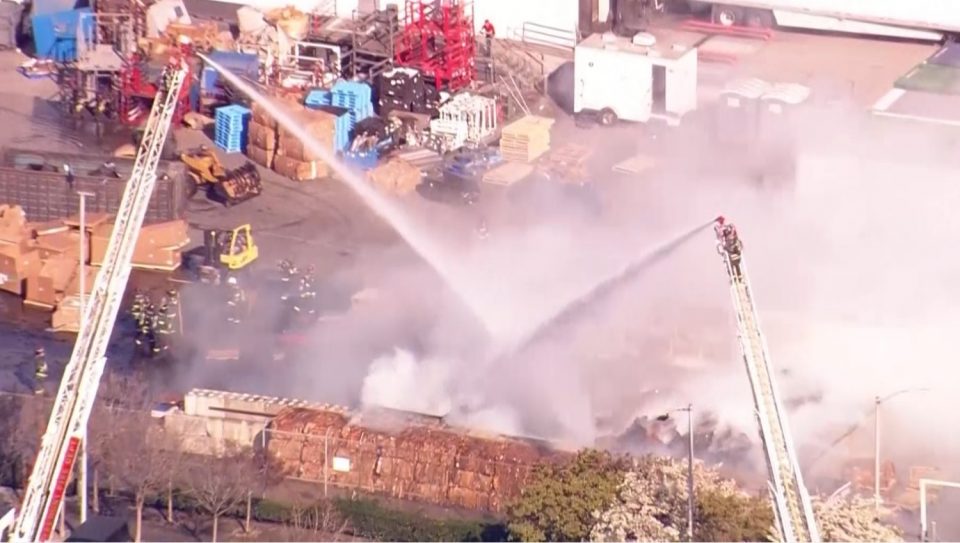 FREMONT (CBS SF) — Fire crews in Fremont on Friday afternoon have controlled a two-alarm fire outside the Tesla Factory, according to authorities.