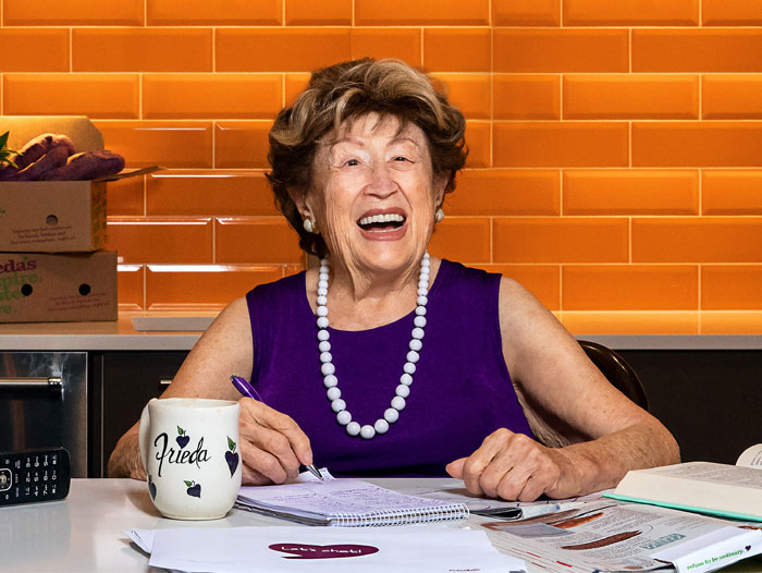 Frieda Caplan is perhaps the best-known woman in the produce industry. Since she founded Frieda’s Finest / Produce Specialties, Inc. in Los Angeles in 1962 and painted her dock in the 7th Street Produce Market bright purple, Caplan has maintained a high-profile, high-energy presence that has led the way for a greater acceptance of a wide variety of specialty produce items.