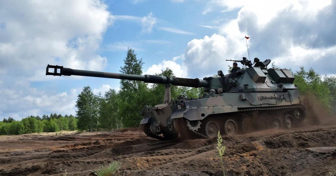 Krab howitzer during an exercise.