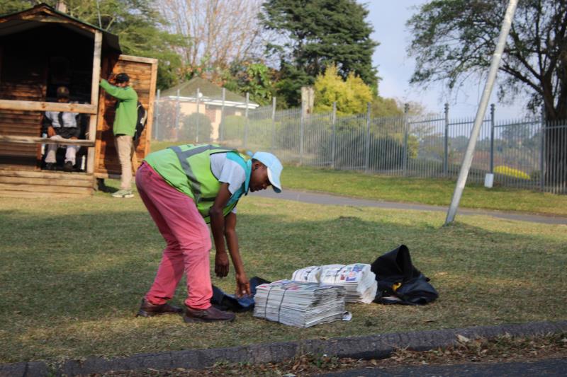 Once the truck driver has off-loaded his first batch of newspapers and the runners, he goes to the drop-off point to collect the next load.