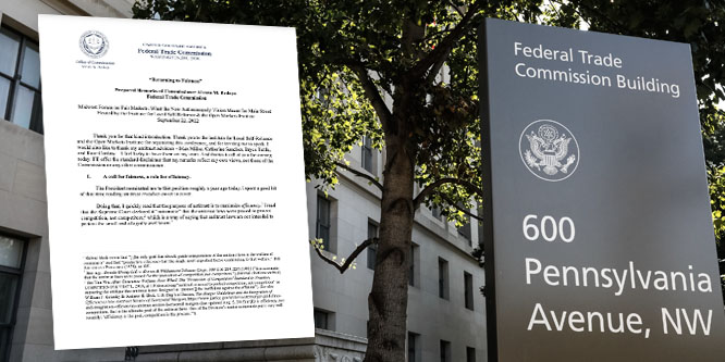“Why doesn’t that word, ‘efficiency,’ appear anywhere in the antitrust statutes that Congress actually wrote and passed? If efficiency is the goal of antitrust, then why am I charged by statute with stopping unfair methods of competition, and not ‘inefficient’ ones,” he said. “We cannot let a principle that Congress never wrote into law trump a principle that Congress made a core feature of that law. I think it is time to return to fairness.”