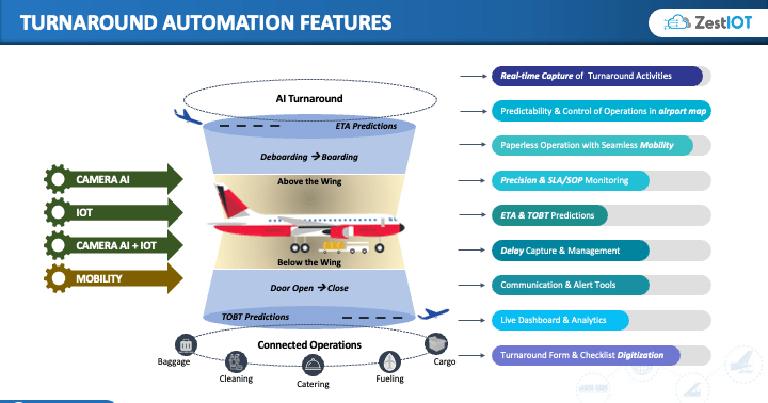 ZestIoT focuses on IoT, Camera AI-based end-to-end solutions for multiple industries like aviation (airports, airlines, ground handler, fuellers, caterer), oil & gas, steel industry, and ports sectors. ZestIoT has delivered end-to-end automation solutions for airports, airlines & Ground handlers to enable real-time tracking of aircraft, vehicles (ground assets), dollies & containers carrying cargo enabling end to the visibility of flight turnaround operations. As a result, aviation customers have observed significant improvement in operational efficiencies, improvement in productivity like additional flights per parking stand & operational cost savings in day-to-day operations.
