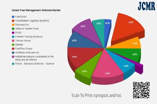 Assessment of leading Fuel Management Software market competitors: – FuelCloud , TruckMaster Logistics Systems , Rarestep Inc. , Gilbarco Veeder-Root , PIUSI , Franklin Fueling Systems , Triscan Group , Banlaw , FuelPlus Group , WolfByte Software Inc. , Additional players considered in the study are as follows:, Fleetx Samsara Software Spireon
