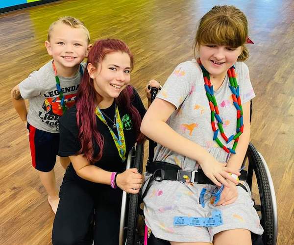 Piper Hopkins (center) with Gracie and a friend at the Whiteville Fun Factory.