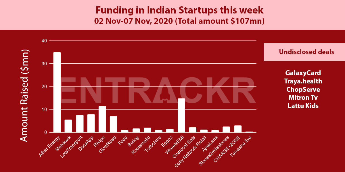 This week 23 Indian startups raised funding, of which 18 received a total sum of about $107 million. Among them, Ather Energy raised the highest funding of about $35 million followed by WheelsEMI, which raised $14.8 million.