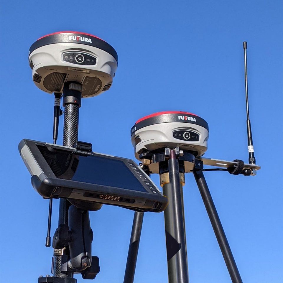 Contractors can use the Futtura system to localize sites, check grade, configure base stations, set stakes and calculate volumes of material removed.