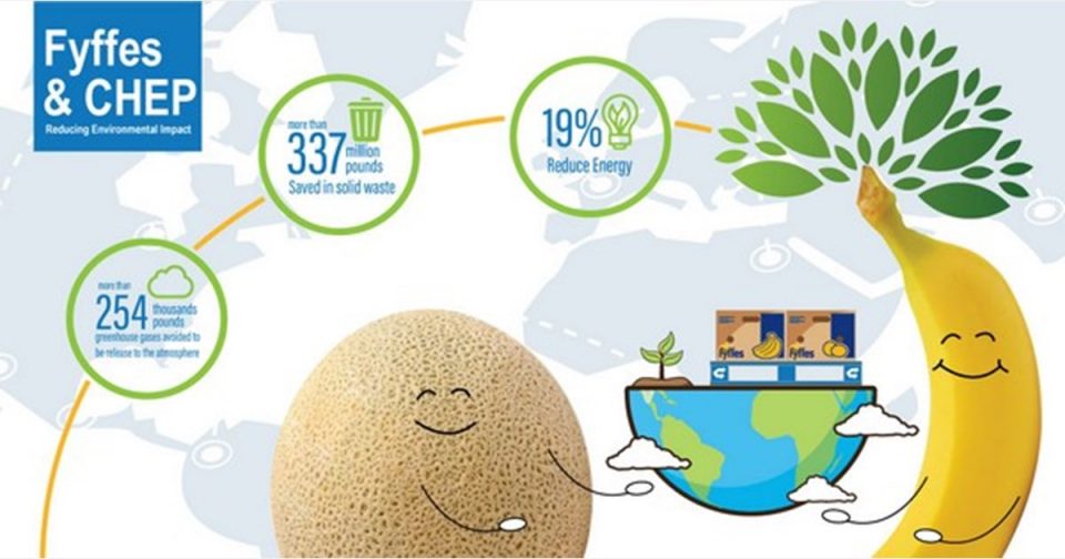 Over the past decade Fyffes has significantly reduced its carbon footprint through different initiatives that support the first pillar of Fyffes global Sustainability Strategy – Stewardship for the Planet. One of these initiatives is the use of repurposed and recycled pallets to transport millions of boxes of Fyffes fruit worldwide, through a partnership with CHEP (Commonwealth Handling Equipment Pool). As a result of this ongoing partnership, all of Fyffes melons were transported in CHEP pallets during the 2018-2019 off-shore season, and their use in transporting bananas is increasing as well.