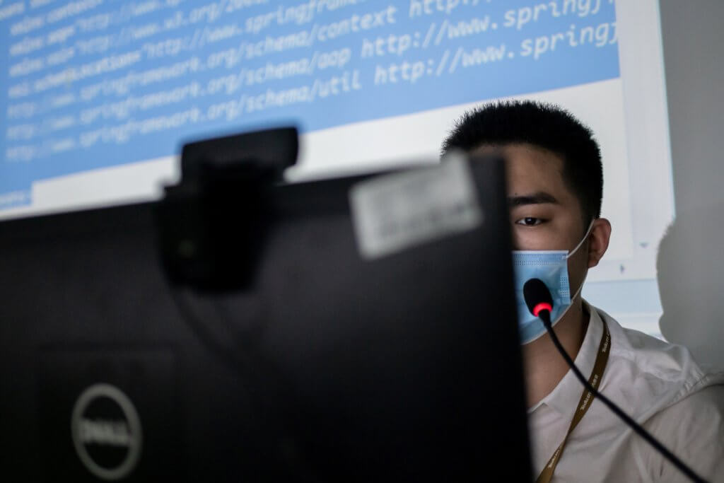 An instructor teaching an online coding class. Source: NICOLAS ASFOURI / AFP