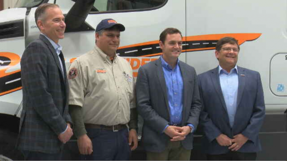 The roundtable consisted of representatives from Schneider, WEL Companies, and Veriha, along with truck drivers and students training to become truck drivers.