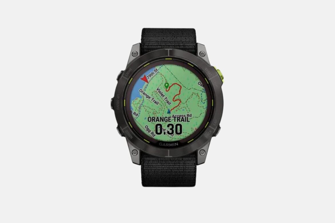 The new Garmin Enduro 2 updates the popular adventure watch with pre-loaded trail maps, improved solar charging, a touchscreen interface, and even an LED flashlight. This premium build is constructed with a titanium bezel and rear case with a durable nylon band.