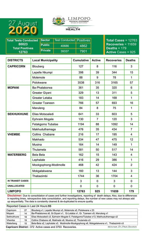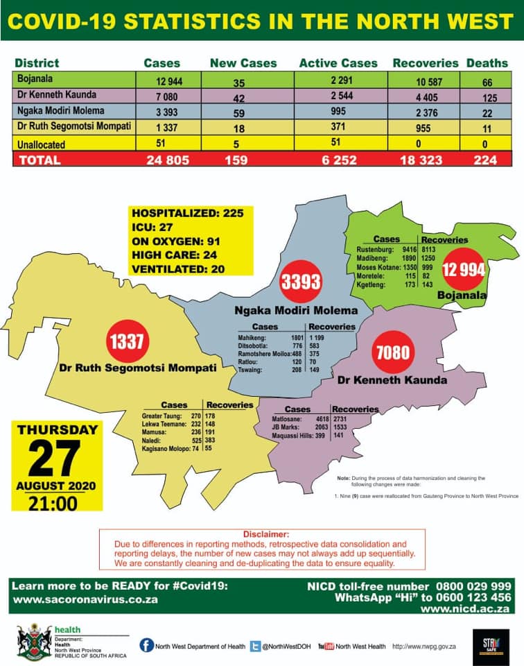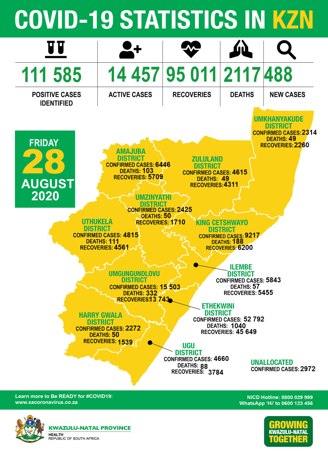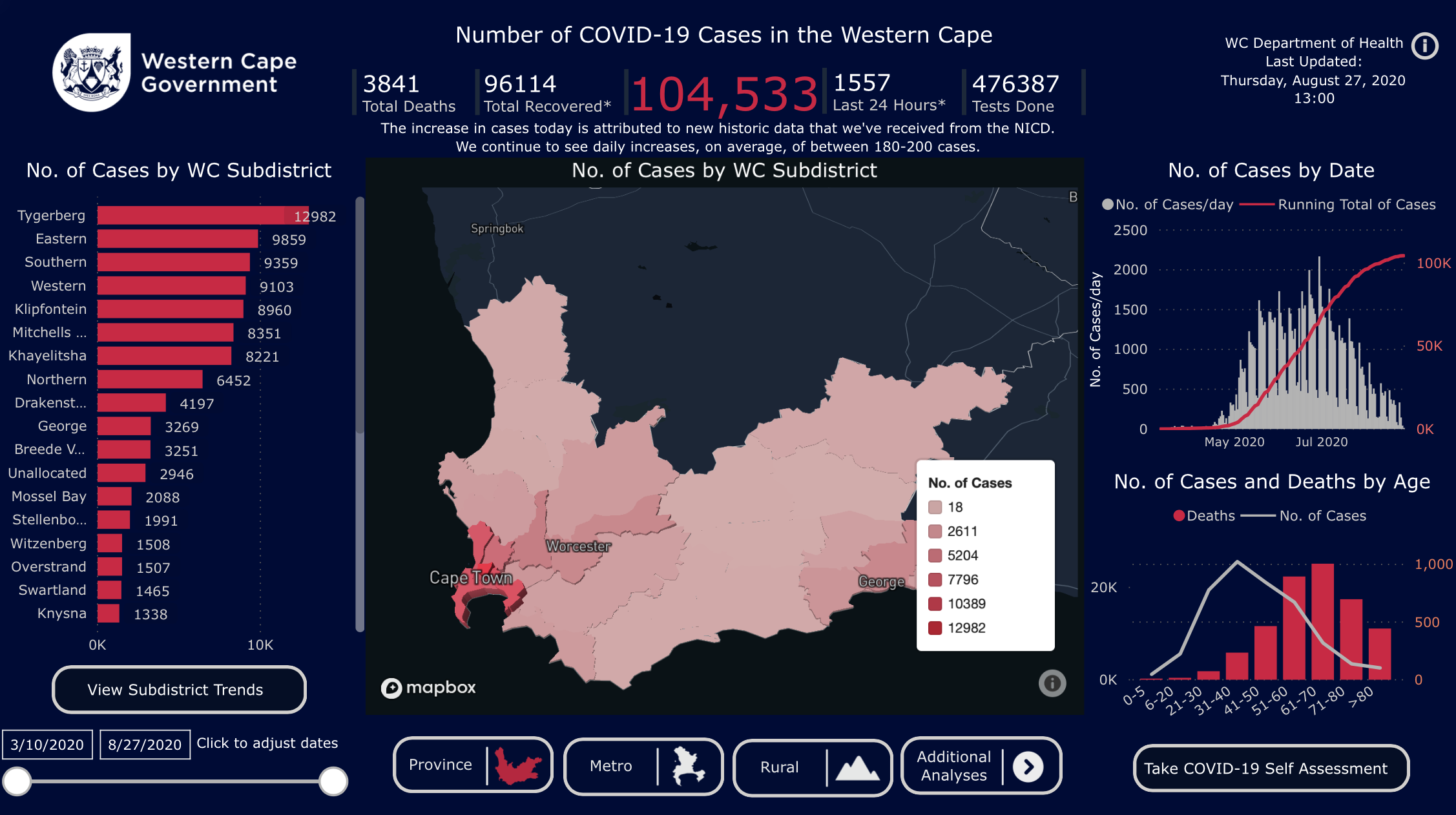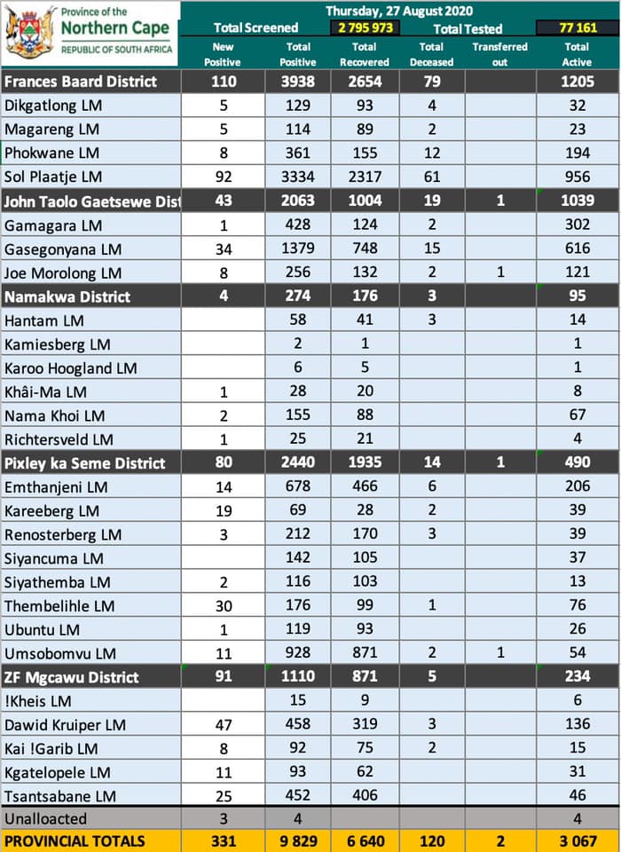 Scroll through the gallery below to view the latest Covid-19 statistics on 28 August at the district level. All maps are sourced from provincial health departments. Mpumalanga, the Eastern Cape and Free State did not provide an update by the time of publishing: