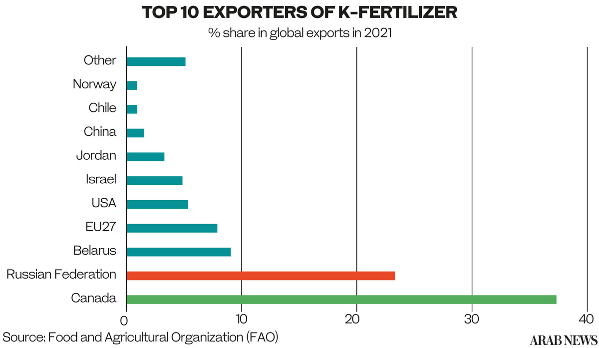 In addition, Russia is also one of the leading exporters of fertilizer, an essential material used in the farming business.