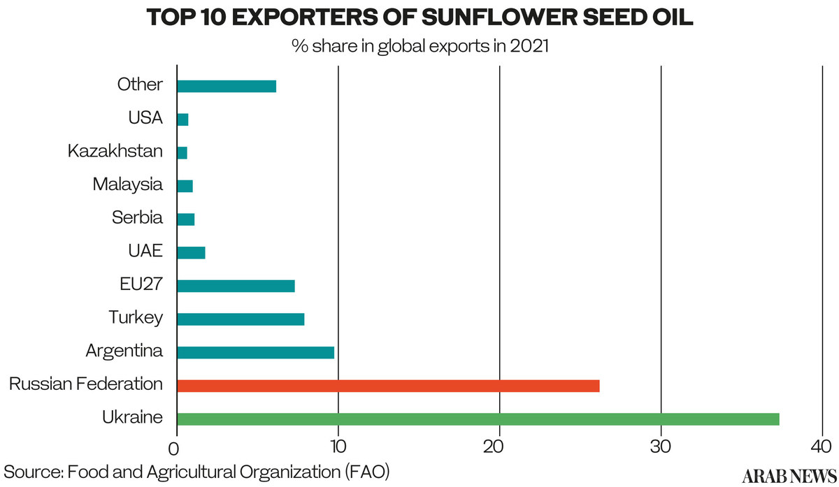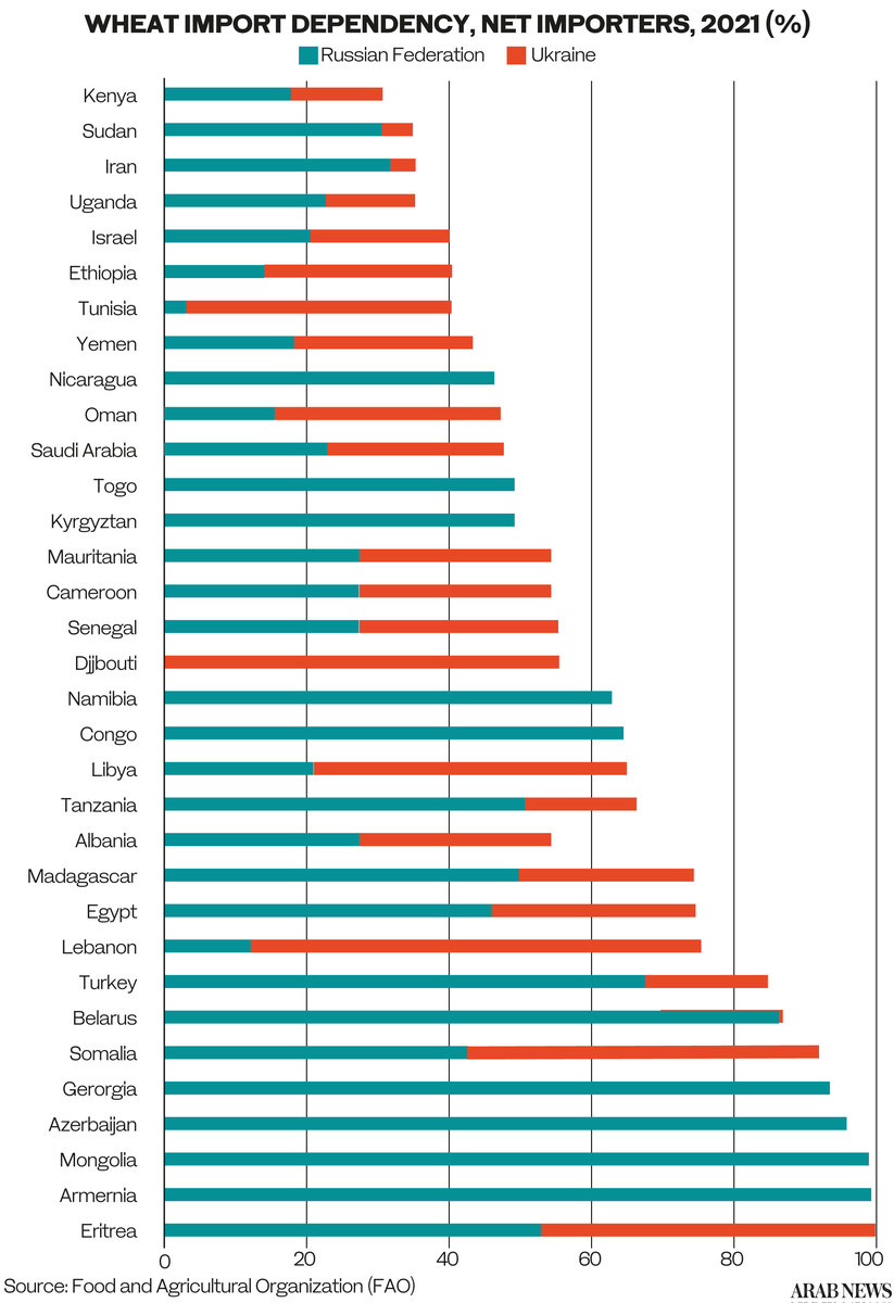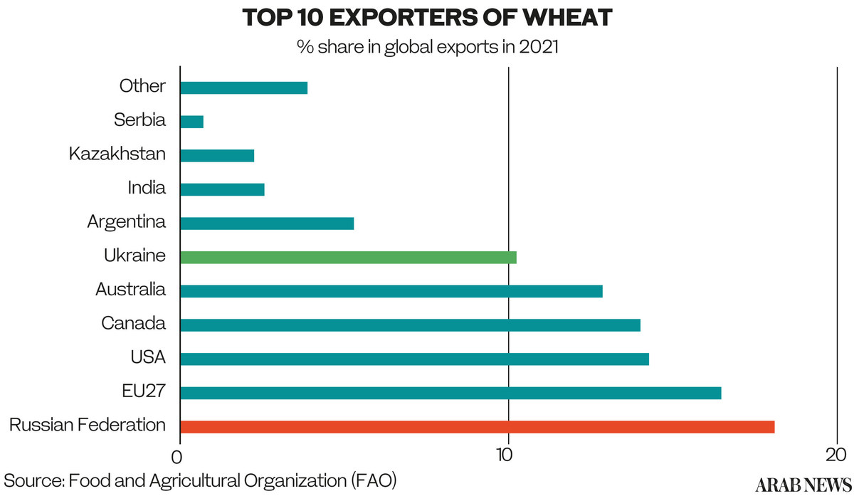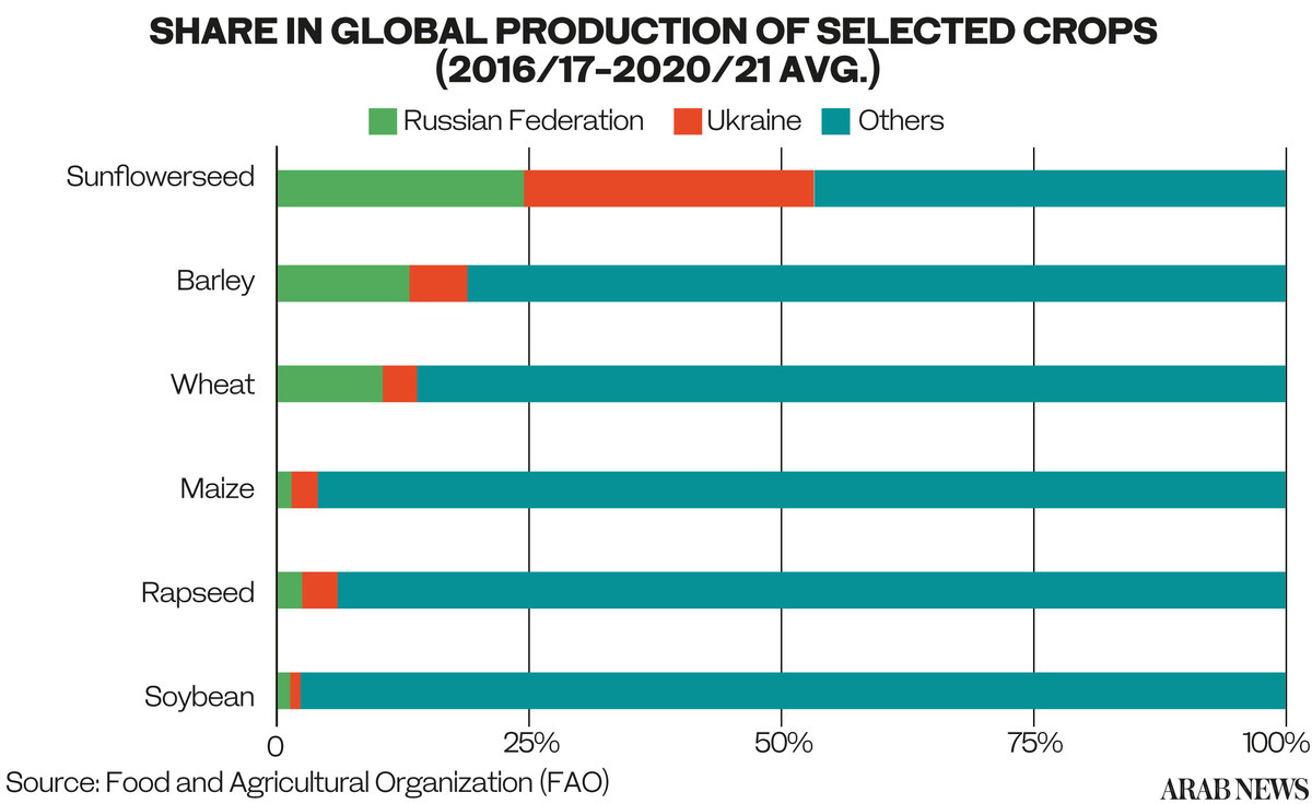RIYADH: The ongoing war between Russia and Ukraine is creating major disruptions in global food supplies, creating fear of food insecurity and inflation in some countries heavily reliant on imports amidst rising energy costs.