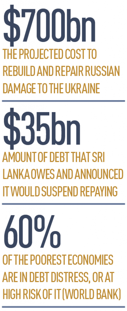 One part of the international financial markets that has already felt the impact is the sovereign debt market. On April 12, Sri Lanka announced that it would suspend payments on the $35bn it owes the world. This is not solely a consequence of the Ukraine conflict. Its impact on energy and commodity prices quickly exacerbated an already shaky economy and a country beset with social unrest. Less than a month later, on May 9, the government fell.