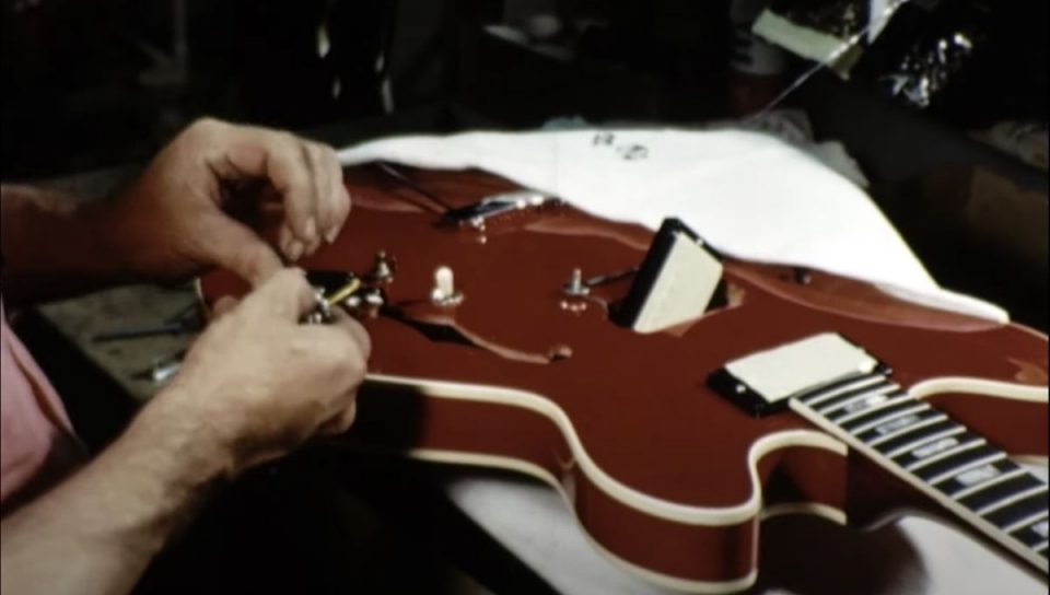 Toward its end, the film also touches on Gibson’s guitar amp and pickup divisions, and shows how the company made its acoustic and electric guitar strings at the time.