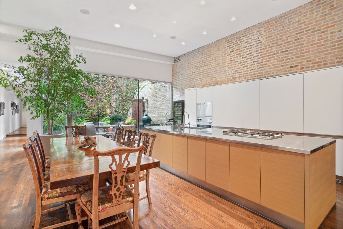 Spanning 4,000 square feet across two levels, the four-bedroom residence features high ceilings, exposed brick walls, hardwood floors, and a surprising amount of natural light—thanks in part to a landscaped courtyard tucked away at the home’s center. There’s also a 1,000 square foot outdoor on the second level and an attached two-car garage.