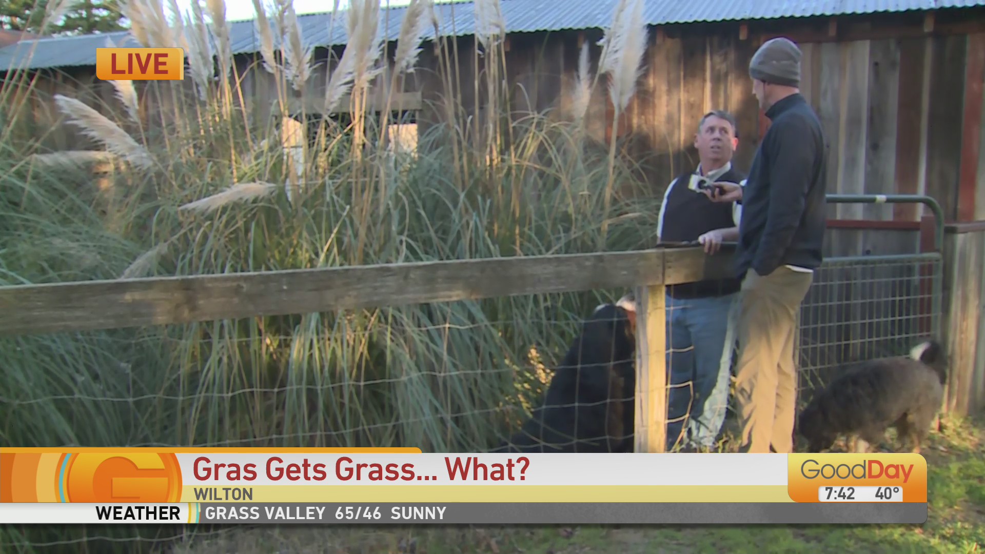 Dave Scores Some Grass For The Studio!OK, if you watched the show yesterday, we got some AWESOME wicker chairs for the studio! Jordan wants to add some decor to “create a space” for the chairs, so we sent photographer/rover driver Dave Grashoff out to find some pampas grass! Boy, did he deliver!