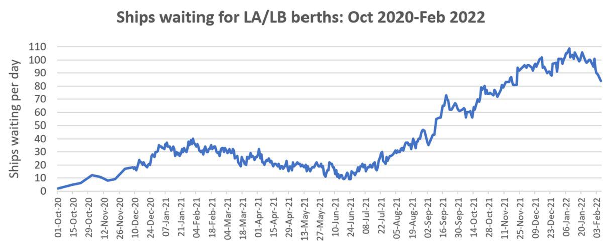 Port congestion — which dramatically worsened in the second half of 2021 — appears to have temporarily peaked, although it’s too soon to tell whether it’s a reprieve before the next runup, a high-level plateau, or the beginning of the end.