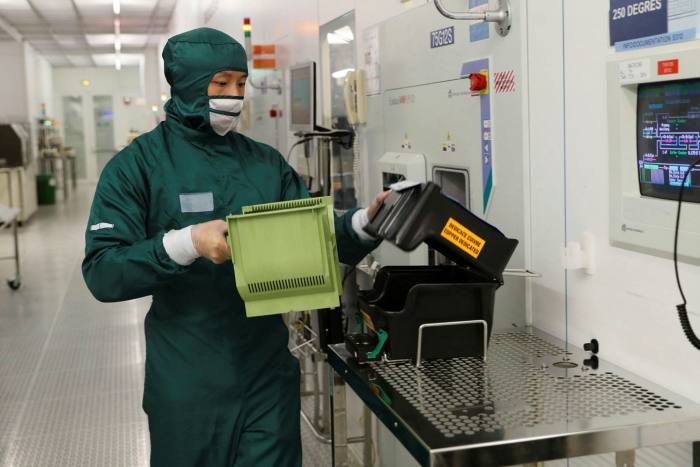 Electronic chips being manufactured at the X-Fab semiconductors factory at Ormoy, near Paris © Thomas Samson/AFP/Getty