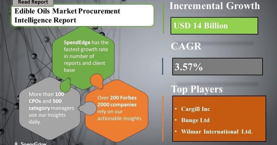 NEW YORK, Dec. 8, 2021 /PRNewswire/ — The Edible Oils market will register an incremental spend of about USD 14 Billion, growing at a CAGR of 3.57% during the five-year forecast period. A targeted strategic approach to Edible Oils sourcing can unlock several opportunities for buyers. This report also offers market impact and new opportunities created due to the COVID-19 pandemic.