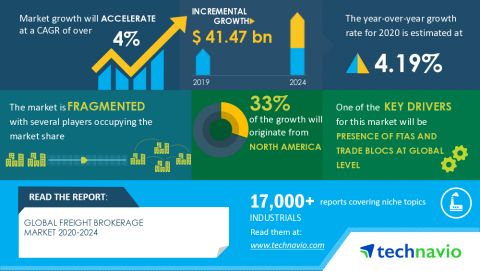 Technavio has announced its latest market research report titled Global Freight Brokerage Market 2020-2024 (Graphic: Business Wire)
