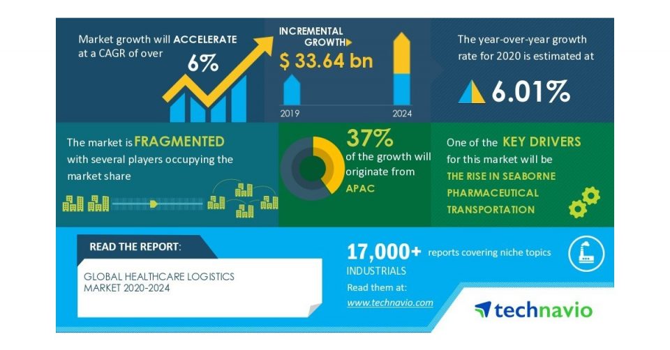 LONDON–(BUSINESS WIRE)–The healthcare logistics market is poised to grow by USD 33.64 billion during 2020-2024, progressing at a CAGR of over 6% during the forecast period. Request free sample pages
