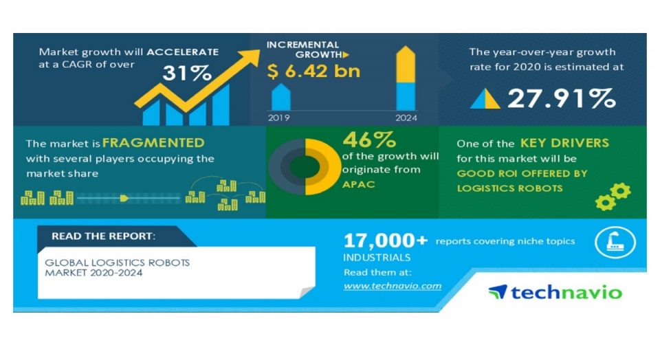 LONDON–(BUSINESS WIRE)–The global logistics robots market is poised to grow by USD 6.42 billion during 2020-2024, progressing at a CAGR of over 31% during the forecast period. Request free sample pages