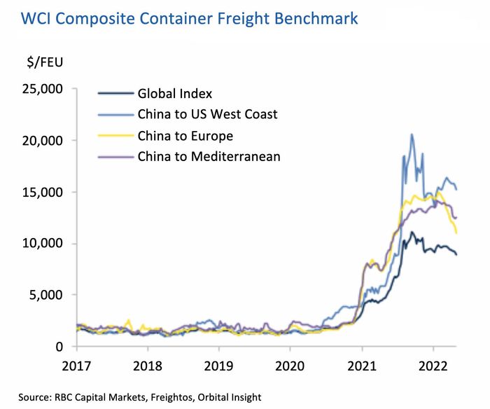 Source: RBC Capital Markets, Freightos, Orbital Insight