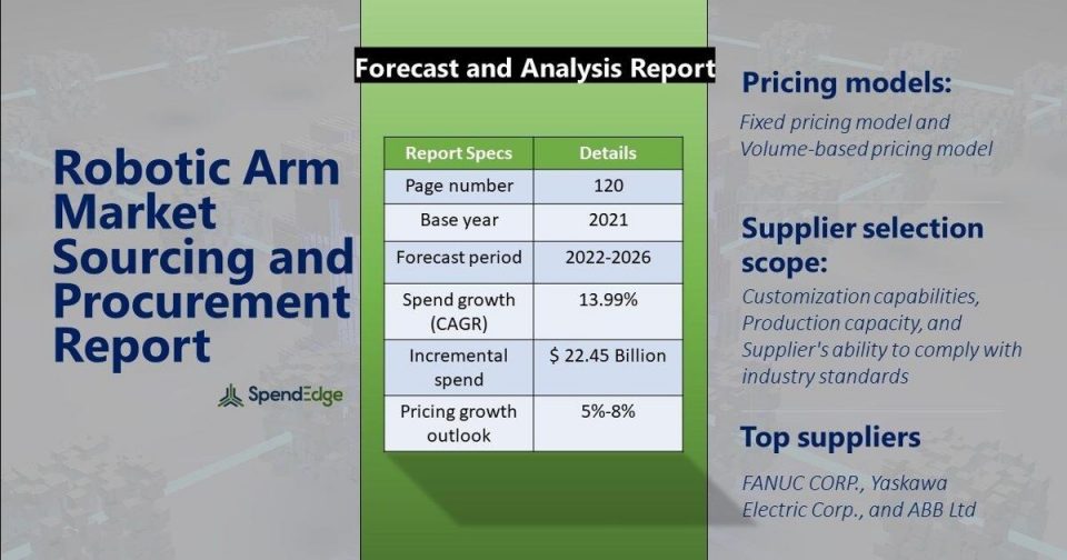 View original content to download multimedia:https://www.prnewswire.com/news-releases/global-robotic-arm-market-sourcing-and-procurement-report-with-top-suppliers-supplier-evaluation-metrics-and-procurement-strategies–spendedge-301555888.html