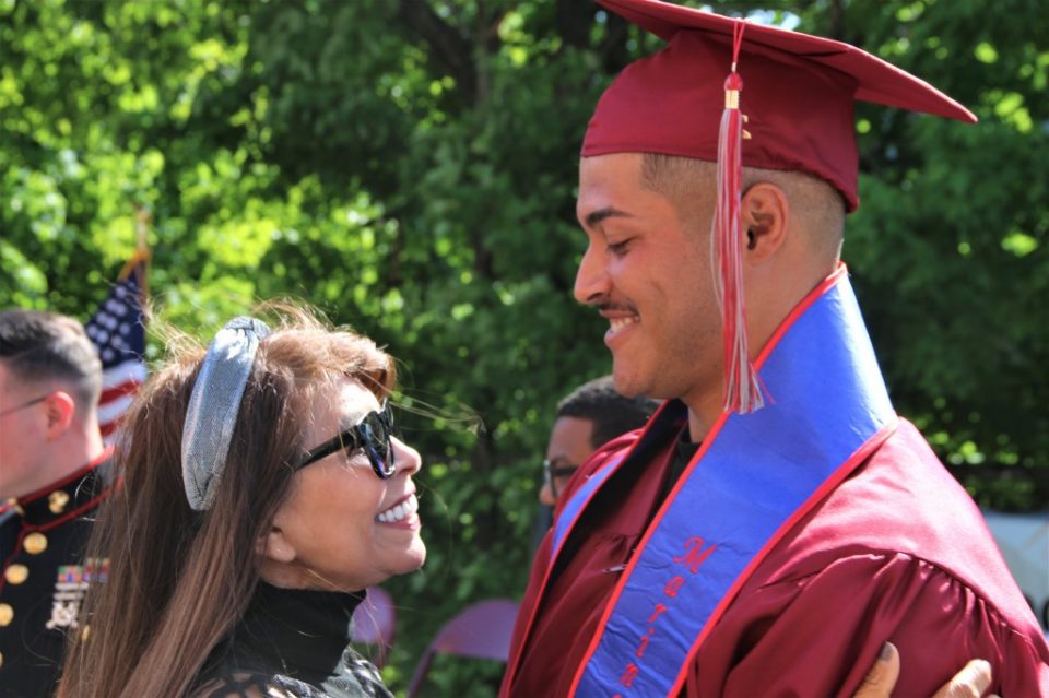 Word spread about the 21-year-old Goodrich Academy student’s predicament and when Principal Alexis Curry heard about it, she was having none of it. The longtime educator took it upon herself to arrange a special graduation ceremony for Cardeal during the annual Senior Celebration held last Monday and paid to rent a stage and two food trucks out of her own pocket.
