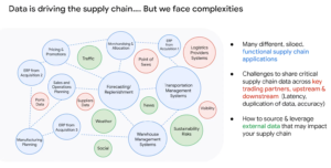 Public data is the critical third data type that will play a large role in making Supply Chain Twin work, Thalbauer said. That includes data about the climate, the weather, traffic, risk management, sustainability, and market and supply trends, he said.