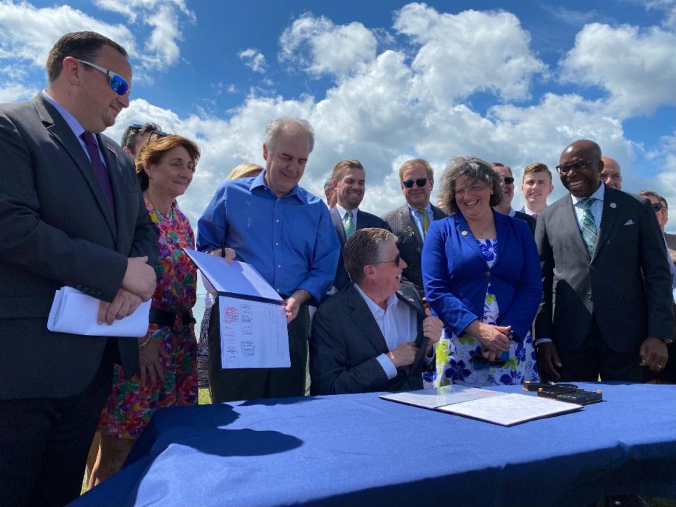 NORTH KINGSTOWN, RI – Continuing his #RIMomentum Tour, Governor Dan McKee today signed into law historic legislation proposed by his Administration that seeks to expand Rhode Island’s offshore wind energy resources.