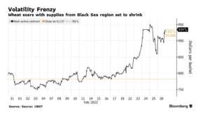 And Bloomberg writers Megan Durisin, Irina Anghel, and Archie Hunter reported on Tuesday that, “Ukraine’s ports are closed, and while some grain is still leaving Russia for now, traders and shipping representatives said there were little or no new deals being signed because of the uncertainty around the conflict, potential new sanctions and surging costs for freight and insurance. Top importer Egypt held a wheat tender Monday but canceled it after only getting high-priced offers for French and American supplies.”