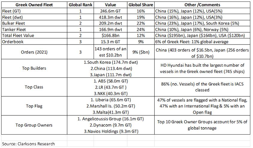 As the shipping community prepares for a return to Posidonia after a four-year break, in this analysis (see below and attached) extracted from the Shipping Intelligence Weekly report, Steve Gordon, Global Head of Clarksons Research, tracks the development of the Greek fleet and the pivotal role it continues to play in international shipping. And while the past four years have seen crisis, operational challenges, dramatic market change and widespread disruption, with 16.4% of global tonnage on the water (by GT, 19% basis dwt), Greek owners retain their pre-eminent market position. The market leading position is even more remarkable given Greek shipping’s role as the ultimate “cross trader” (Greek imports / exports are