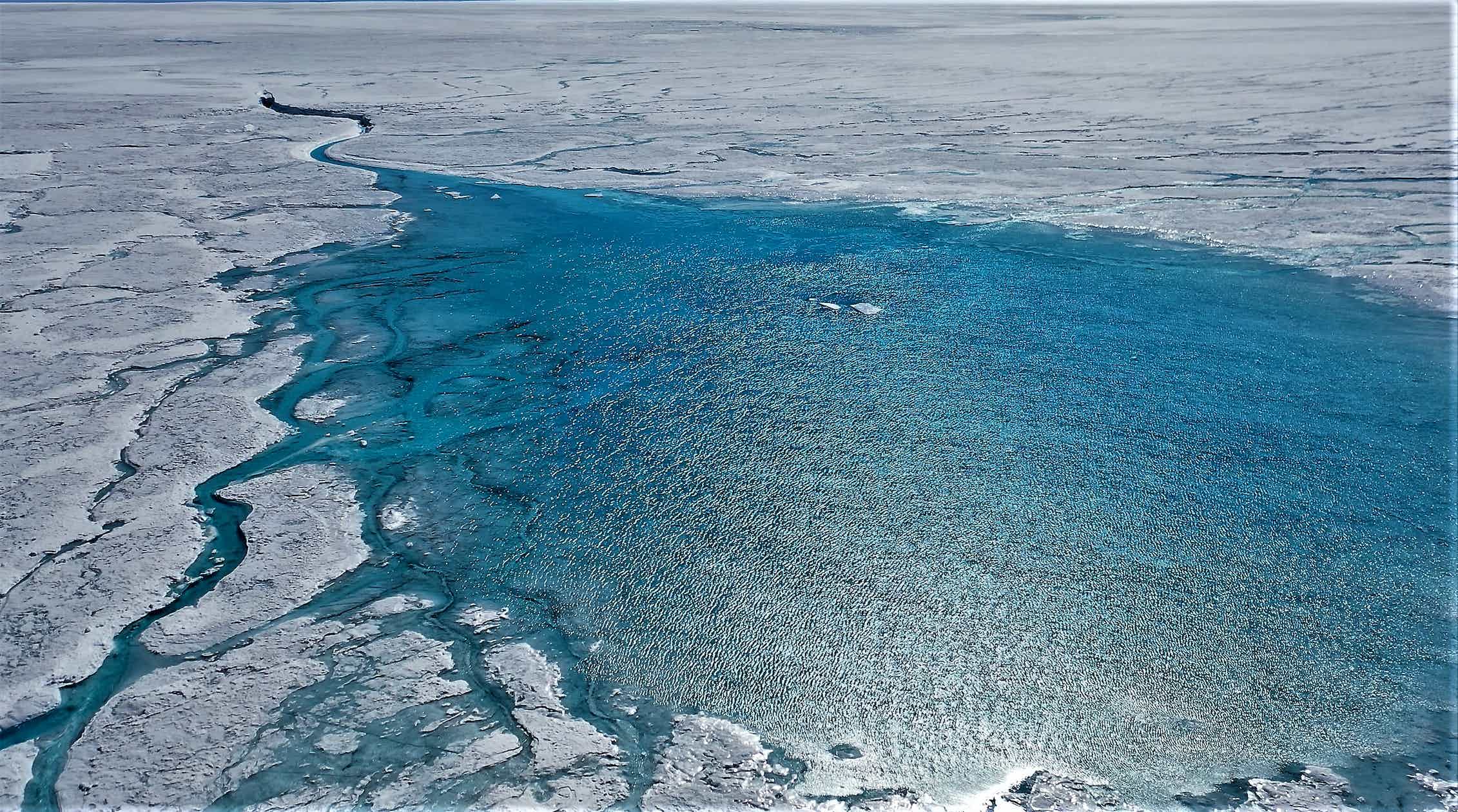 – Supraglacial lakes and river networks are draining into fractures and moulins, bringing with them vast quantities of latent heat. This “cryo-hydraulic warming” within and at the base of the ice sheet softens and thaws the bed, thereby accelerating interior ice flow down to the margins.