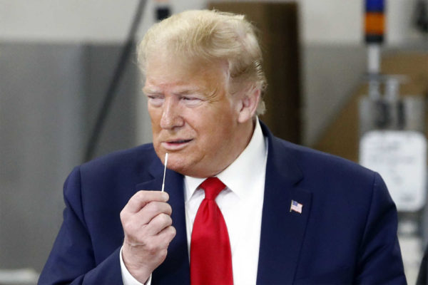 In video and photos taken at the Friday event, Trump could be seen walking around the Puritan factory without a face covering and addressing workers who wore masks and other protective gear. At one point, he held one of the company’s testing swabs near his face.