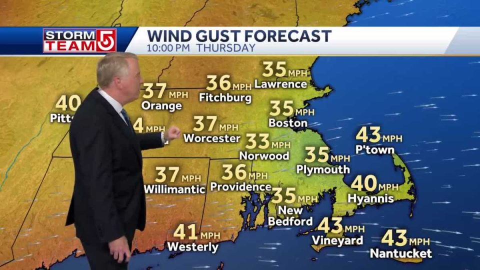 RAIN AND THEN THIS SYSTEM WENT BY. THIS RAPIDLY PUSHED THROUGH BUT POURING OVERNIGHT LAST NIGHT. RAINFALL TOTALS, MANY SPOTS AROUND AN INCH OF RAIN OUT OF THE WHOLE THING. BEVERLY AN INCH OF RAIN, BEDFORD .72. MOST OF THE SOUTH SHORE WAS IN THERE. OVER THE CAPE WE PICKED UP AN INCH OF RAIN. THERE WERE GOOD DOWNPOURS LAST NIGHT, EARLY THIS MORNING AND NOW IT IS GONE. KEEPING TRACK OF THE RAIN AND WONDERING WHERE WE ARE AT, WE ARE STILL ON THE DRY SIDE. WE HAVEN’T GOT ANY SNOW, HAVE PLENTY OF RAIN. COMPARED TO THE YEAR, WE ARE 1.6 INCHES ON THE DRY SIDE. WE COULD USE THE RAIN WE GOT. THE INTERESTING THING, NOTICE WHEN WE GOT OUR HIGH TEMPERATURE AROUND 10:00. NOW YOU KNOW IT WILL START TO DROP OFF AS THE SYSTEM GOES BY AND BRINGS IN COLD AIR. AMAZINGLY WARM MONTHS, ABOVE THE 50 DEGREES MONTH. RIGHT NOW THE SECOND WARMEST WINTER ON RECORD. A COUPLE DAYS TO GO. WE MAY BE CHALLENGING FOR THE WARMEST WINTER EVER RECORDED IN BOSTON. AS LONG AS YOU DON’T NOTICE THE WIND. THE WIND IS OUT OF THE WEST AT 30, GUSTING TO 44 MILES PER HOUR. IT FEELS A LOT COLDER WITH THE BREEZE OUT THERE. THE SUNSET NOT UNTIL 5:31. NEXT WEEKEND WE GO TO DAYLIGHT SAVINGS TIME. SUNDAY GOES A QUARTER TO 7:00 AND MARCH 23 STARING AT 7:00. THE WIND IS STILL GUSTING TO 36 MILES PER HOUR. WORCESTER STILL 39. FITCHBURG 49 MILE-PER-HOUR WIND GUSTS. LESS STORES NEW BEDFORD, VINEYARD HAVEN AND NANTUCKET OVER 40 MILES AN HOUR. THE WIND WILL STAY BUSY THIS EVENING AND THEN BACK OFF SLOWLY THROUGH THE DAY. HERE IS THE TREND, RELATIVELY WARM. IT GETS COLDER AND COLDER. THE COLDER AIR IS FLOWING IN. THE NEXT FEW DAYS, WE WILL BE BELOW AVERAGE. LET ME GIVE YOU A TIMELINE ON THE WIND. THERE IS NOT MUCH CHANGE GOING ON. TOMORROW MORNING YOU WILL BE CALLED. WITH THE WIND IT WILL FEEL LIKE IT IS IN THE TEENS. AND THEN THE WIND WILL BACK OFF BUT IT IS A BREEZY DAY AND WE GET THINGS SETTLING DOWN INTO SATURDAY’S FORECAST. TONIGHT IT IS WINDY AND COLDER. THE WEEKEND LOOKING CHILLY. WARMER TEMPERATURES ARE COMING IN NEXT WEEK. WE WILL SEE WARM TEMPERATURES BACK INTO THE FORECAST. TOMORROW 40 DEGREES. WITH THE WIND IT MAY NOT FEEL WARM. SATURDAY 34 FOR A HIGH, BREEZY ON THE COLD SIDE. NOW WE BEGIN THE NEXT WARM-UP. IT COMES UP SLOWLY ON MONDAY. ELECTION DAY TUESDAY, TEMPERATURES ARE IN THE 50’S. WEDNESDAY, THURSDAY, INTO THE 50’S. AS WE HAVE SEEN SO MANY TIMES AND WE SAW THIS MORNING, WITH WARM AIR COMES MOISTUR