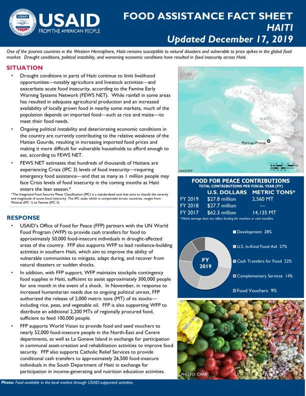 Haiti: Food Assistance Fact Sheet – Updated December 17, 2019 – Haiti