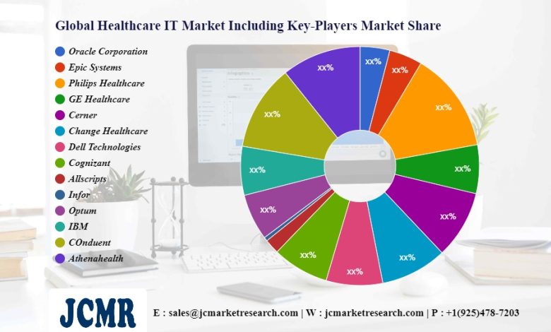 A New Research Published by JCMR on the Global Healthcare IT Market (COVID 19 Version) in various regions to produce more than 250+ page Healthcare IT report. This Healthcare IT study is a perfect blend of qualitative and quantifiable information highlighting key market developments, industry and competitors’ challenges in gap analysis and new opportunities and may be trending in the Global Healthcare IT Market. Some are part of the coverage and are the core and emerging players being profiled Oracle Corporation, Epic Systems, Philips Healthcare, GE Healthcare, Cerner, Change Healthcare, Dell Technologies, Cognizant, Allscripts, Infor, Optum, IBM, COnduent, Athenahealth.