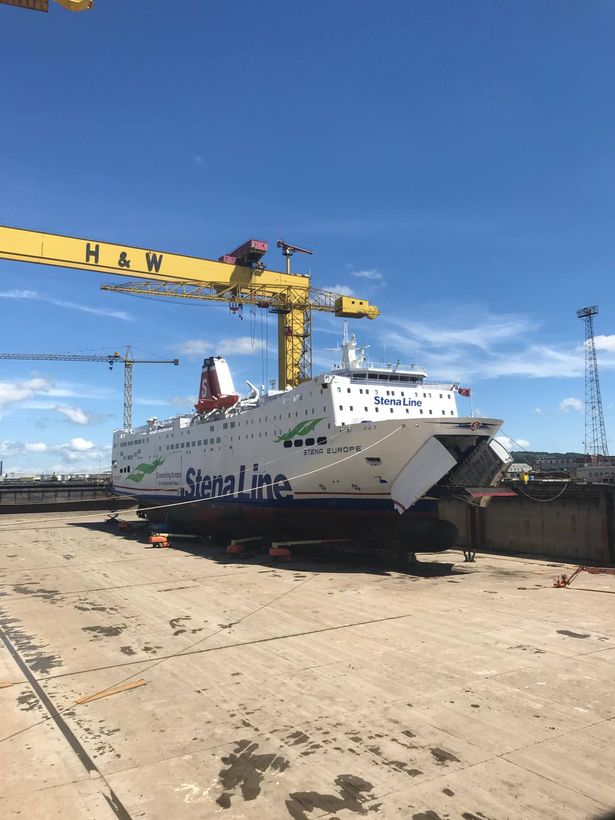 Currently the Stena Europe, which operates on the Rosslare-Fishguard service, is dry-docked in Belfast.