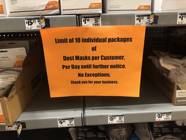 “In the U.S. we’re seeing increased demands for face masks and have limited purchase quantity to 10 per person so we can best serve as many customers as possible,” said Margaret Smith, a Home Depot spokesperson.