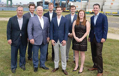 (Seen above: The Holt family, which owns Holt Logistics, was recently featured by a Villanova University publication. Villanova magazine published this photo of family members that have graduated from the Philadelphia-area private school. Pictured are Michael Holt 1995; Tom Holt III 2006; Leo Holt 1986; Eric Holt 2007; Christian Holt 2015; Phillip Holt 2010; Angela Marie (Minnie) Devine 2009 and 2017 MBA; and Tom Holt Jr. 1985. In the background is Holt’s Gloucester Marine Terminal.)