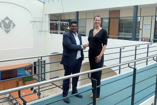 Honest CEO Renji shaking hands with Viscon CSO Charlotte